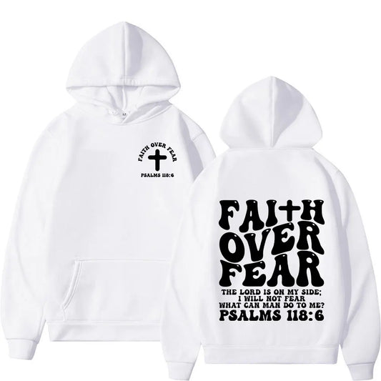 Aesthetic Christian Jesus Faith Over Fear Bible Verse Hoodies Men Women Fashion Harajuku Oversize...