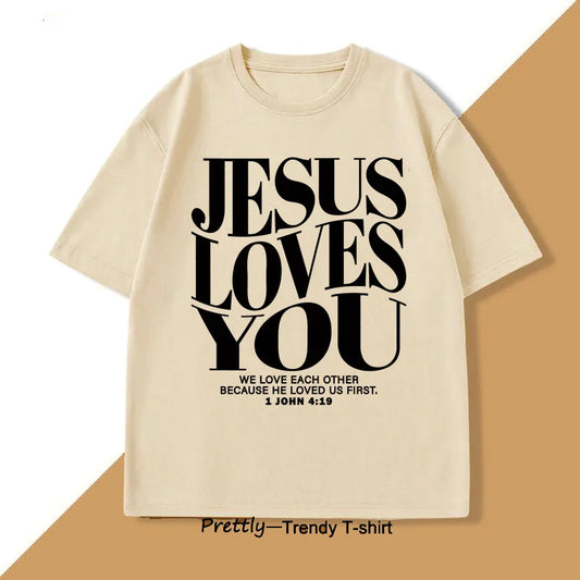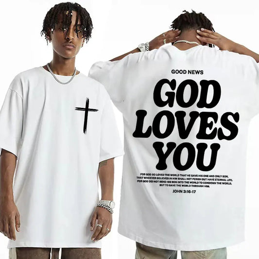 Jesus Loves You T Shirt for Men Bible Verse T-shirt Christian Design Cotton Short Sleeve Printed ...