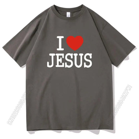 I Love Jesus Oversize Font Print T-Shirt Couples Korean Trend Shrink-Proof Cotton T Shirt Men Wom...