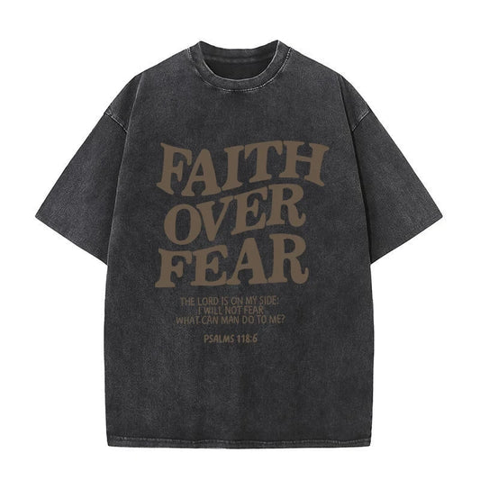 FAITH OVER FEAR Letter Slogan T-shirts for Women Men Popular Positive Quotes T Shirts Christianit...