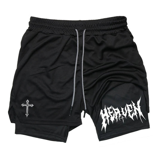 Cross Print 2 in 1 Workout Running Shorts for Men Christian Gym Athletic Shorts with Compression ...