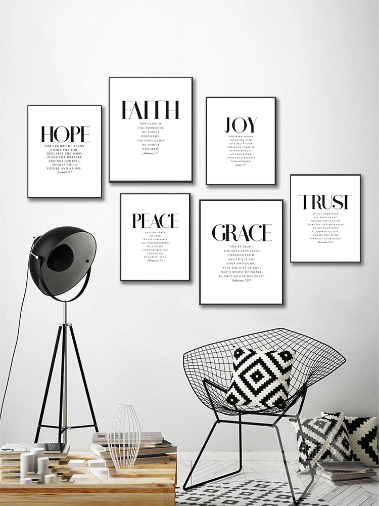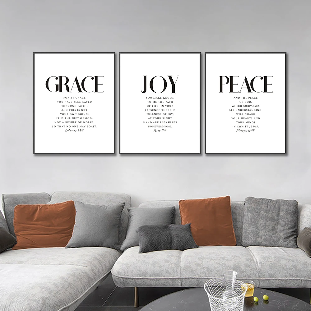 Bible Verse Wall Poster Grace Joy Peace Hope Trust Faith Art Christian Quotes Print Canvas Painting for Living Room Home Decor