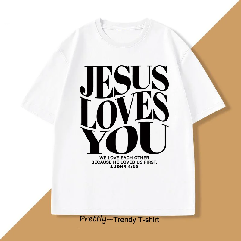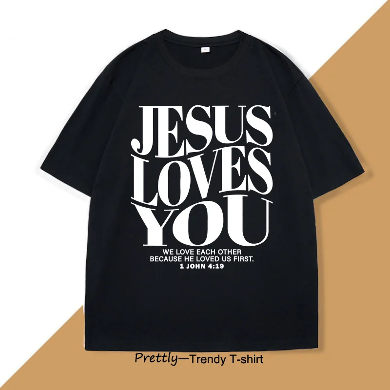 Jesus Loves You T Shirt for Men Bible Verse T-shirt Christian Design Cotton Short Sleeve Printed Tshirt Unisex Clothes