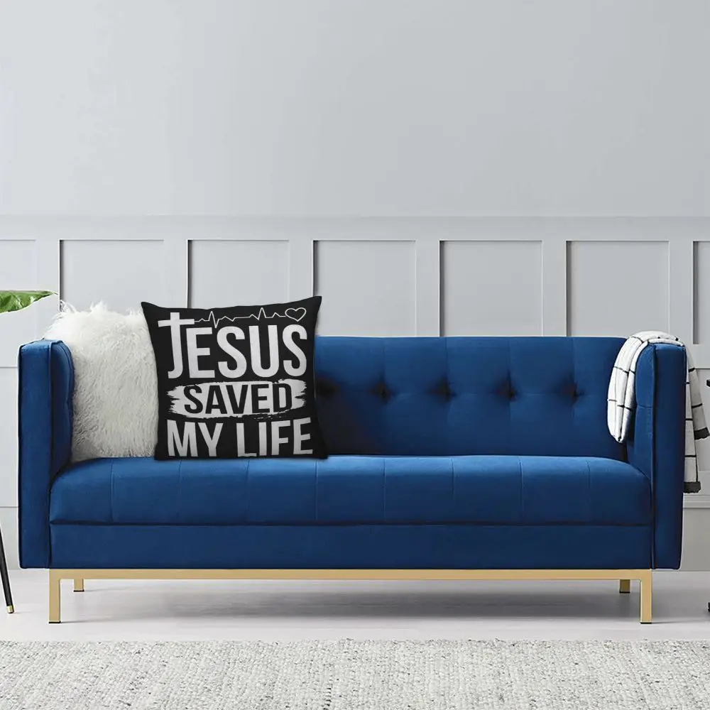 Luxury Jesus Saved My Life Cushion Cover for Sofa Soft Christ Religion Christian Faith Pillow Case Bedroom Decoration